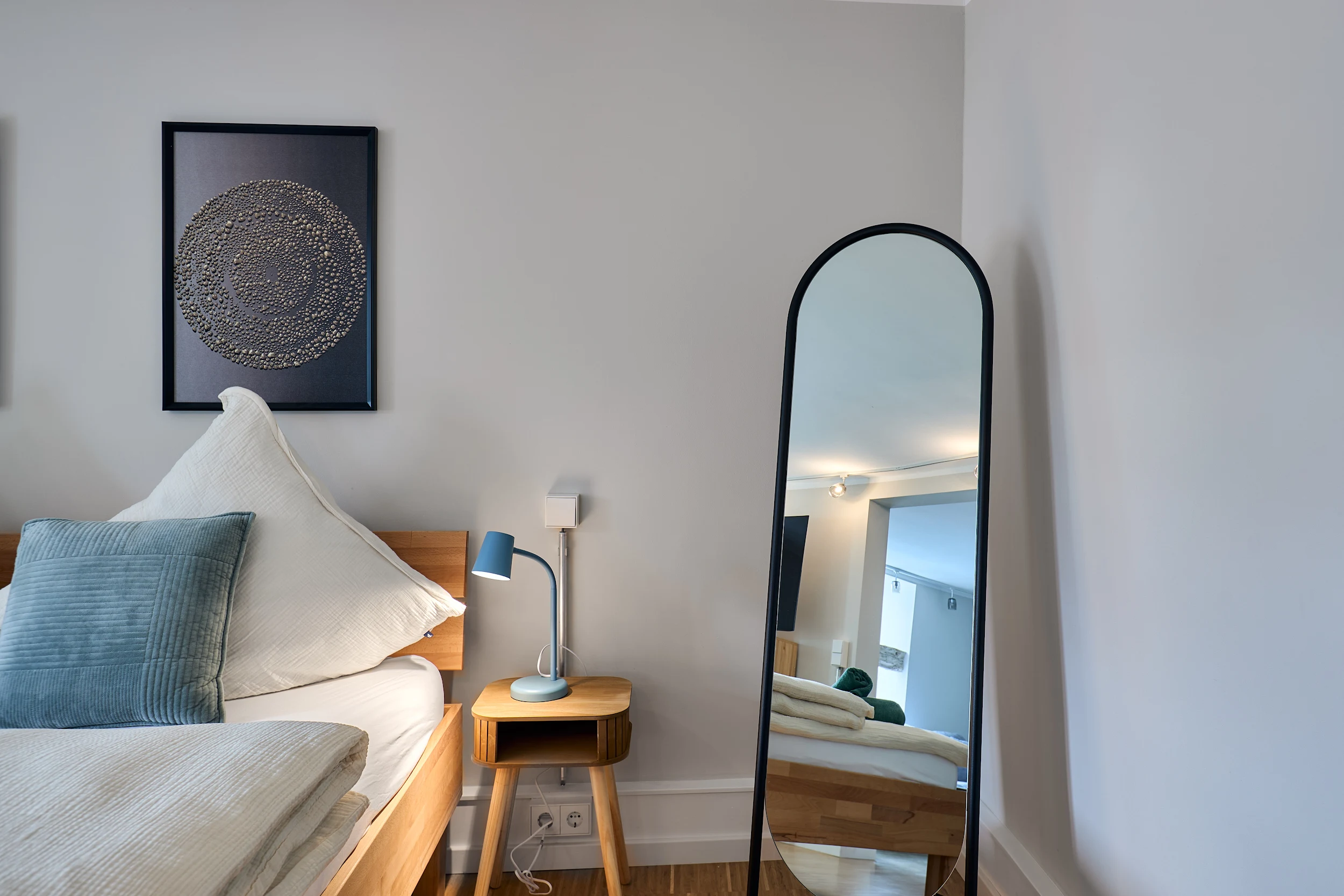 Auf rund 45 m² bietet SEELICHT einen Ort zum Entspannen und Wohlfühlen. Die klare Gestaltung, helle Farben und die ruhige Atmosphäre schaffen Raum zum Abschalten – ideal für alle, die den See lieben und mitten in der Altstadt wohnen möchten.