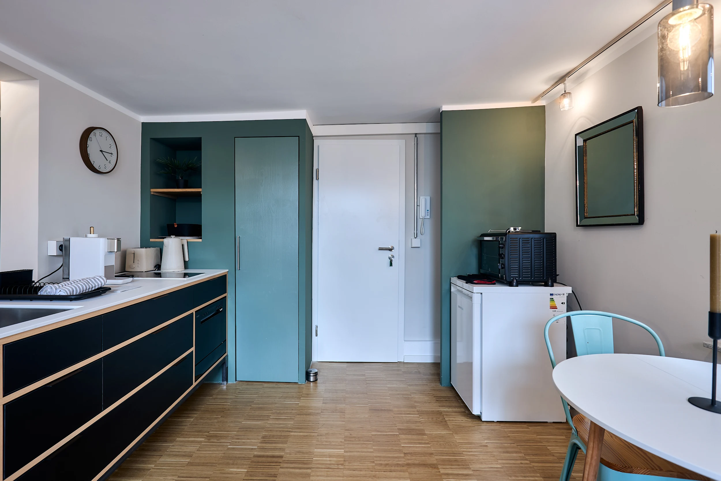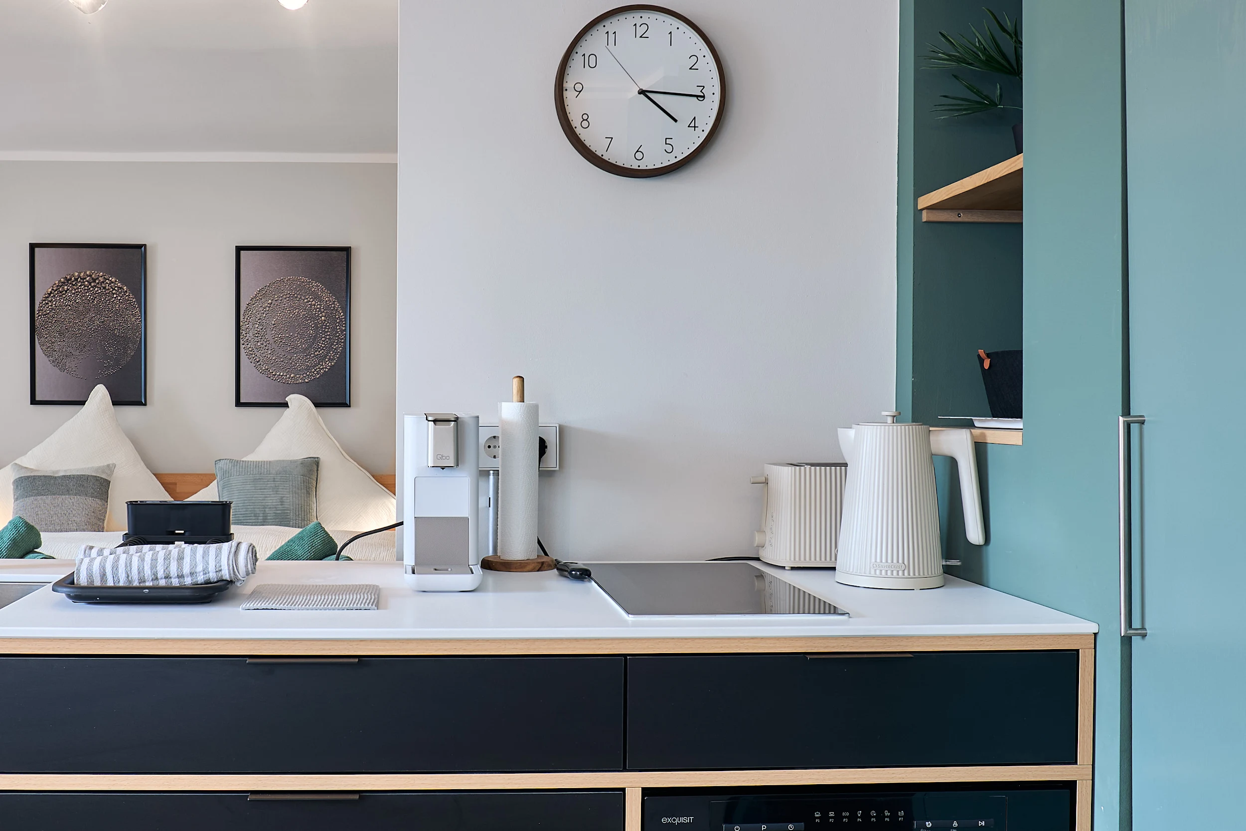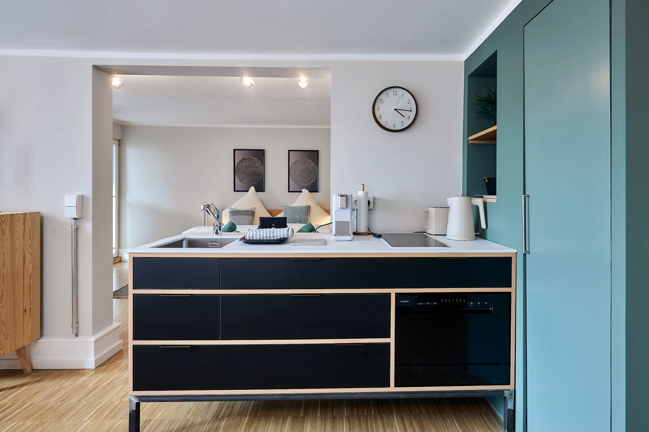 Die moderne Küchenzeile ist hochwertig ausgestattet und verfügt über eine Spülmaschine – perfekt für dein Frühstück oder ein entspanntes Abendessen.