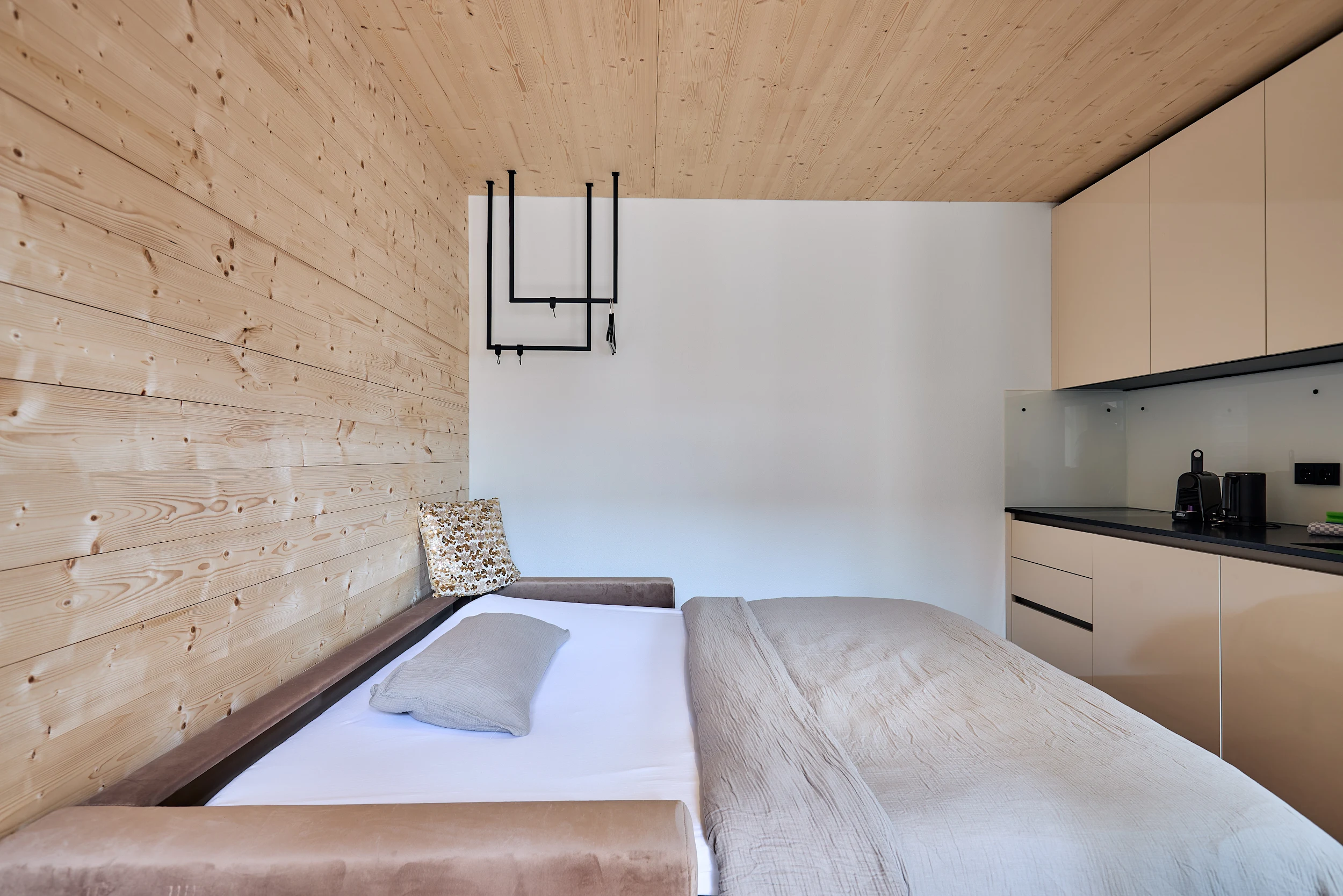 Manchmal braucht es nur einen kleinen, besonderen Ort – einen Rückzugsraum ganz für sich allein. Die „Kleine Rose“ ist genau so ein Ort: ein liebevoll gestaltetes Tiny-Zimmer mit eigenem Bad, das sich wunderbar als zusätzliches Schlafzimmer buchen lässt – zum Beispiel, wenn die Familie größer wird oder Oma und Opa mit auf Reisen gehen.