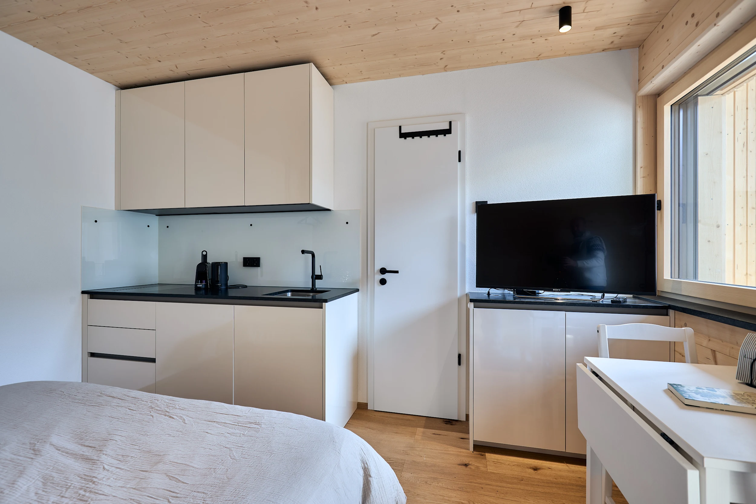 Ideal als Ergänzung zu einer der Ferienwohnungen auf dem Rosenhof schafft dieses kleine Zimmer Raum für Privatsphäre und Rücksicht – und gleichzeitig Nähe zur Familie oder Reisegruppe. So ist jeder für sich – und doch gemeinsam im Urlaub.