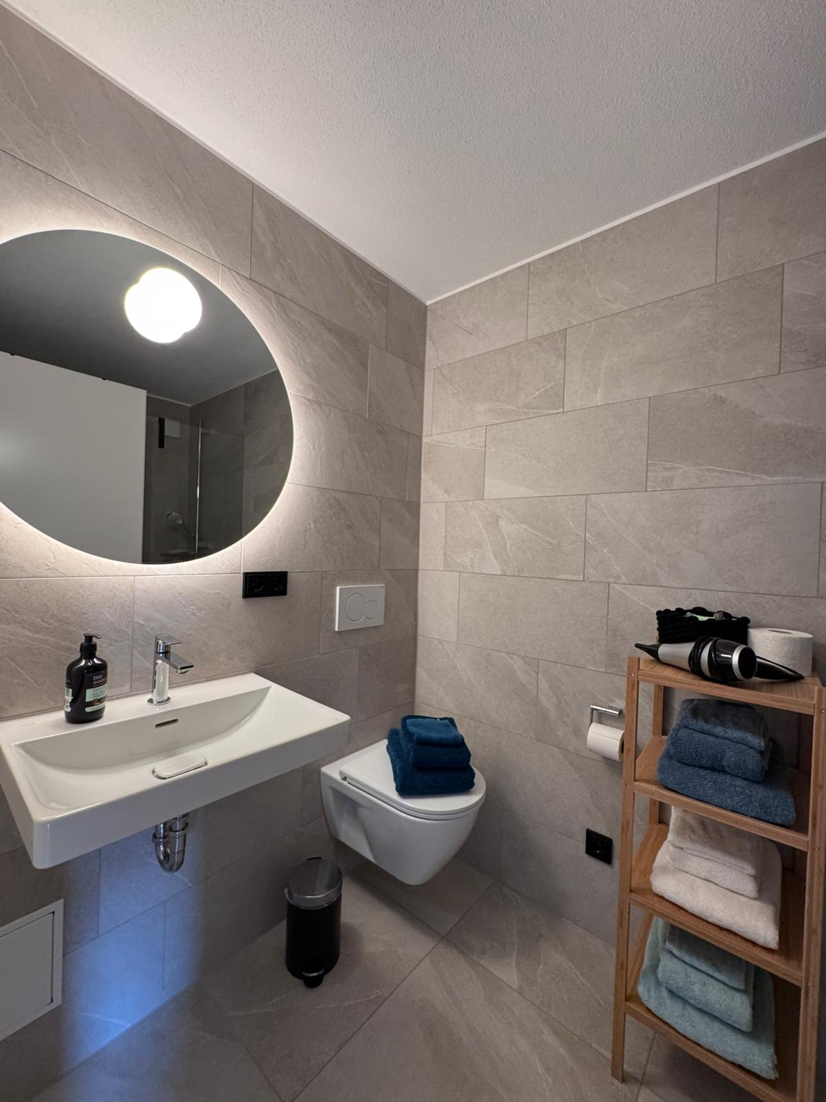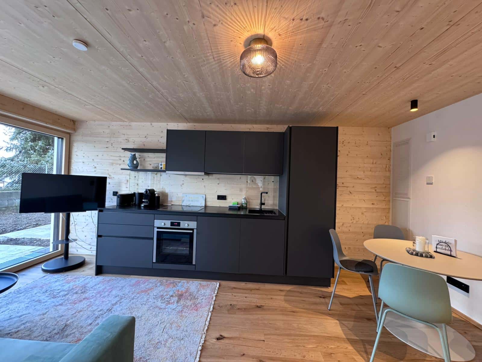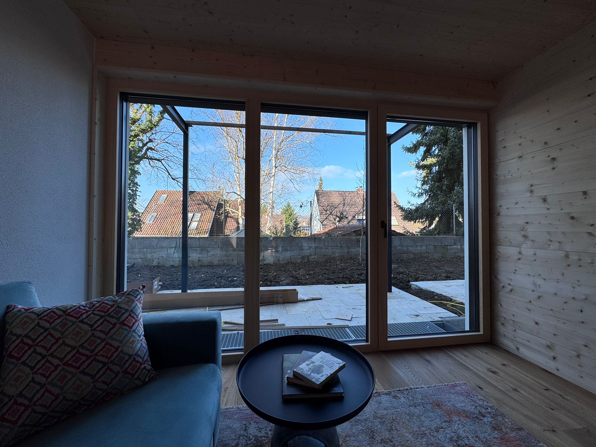 Durch die großen Fenster fällt das Licht sanft in die Räume, und die private Terrasse mit Blick ins Grüne wird schnell zum Lieblingsplatz – für Frühstück im Morgentau oder laue Sommerabende unter freiem Himmel.