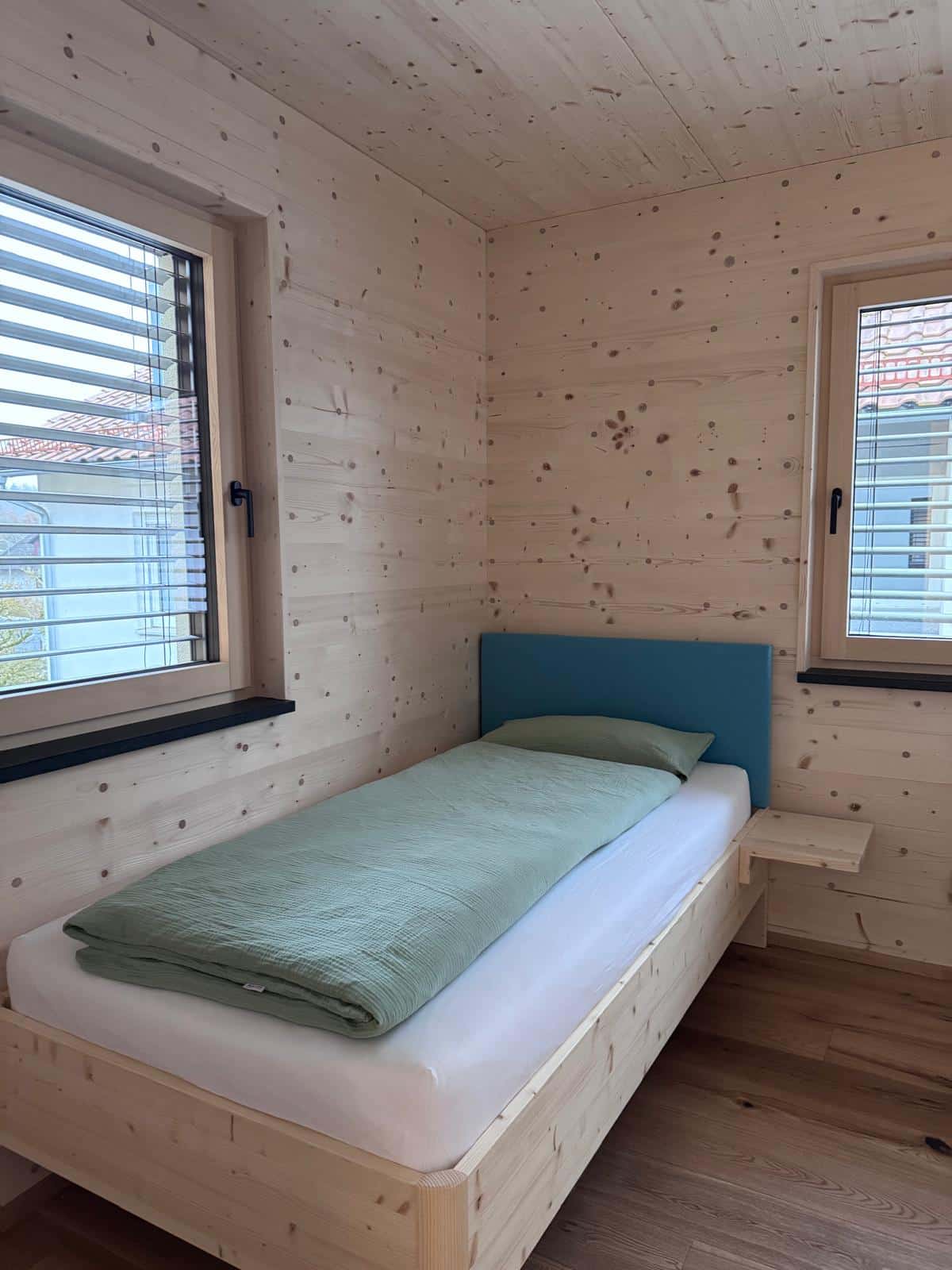 Ein besonderes Highlight unserer Ferienwohnungen auf dem Rosenhof sind die Zirben-Schlafzimmer. Die Zirbe ist bekannt für ihren wohltuenden Duft, der beruhigt, den Herzschlag senkt und nachweislich für tiefen, erholsamen Schlaf sorgt. Starte den Tag mit mehr Energie für Ausflüge, Radtouren oder entspannte Stunden am See.