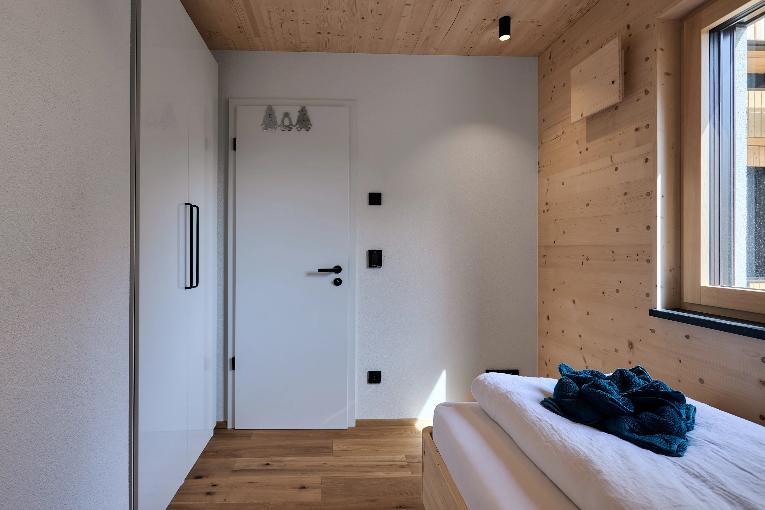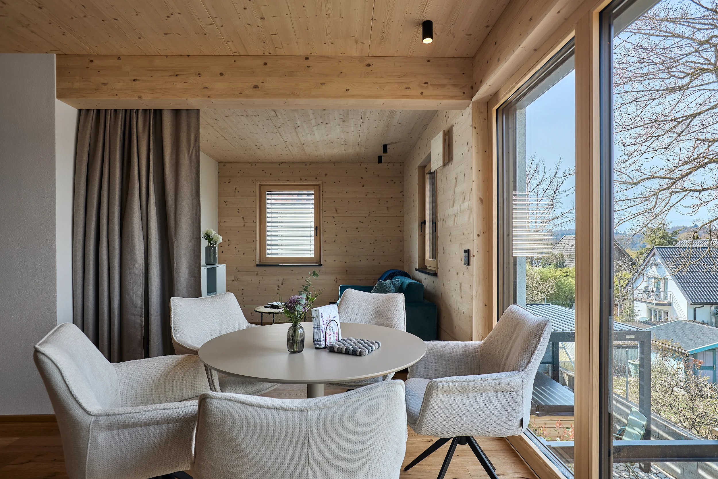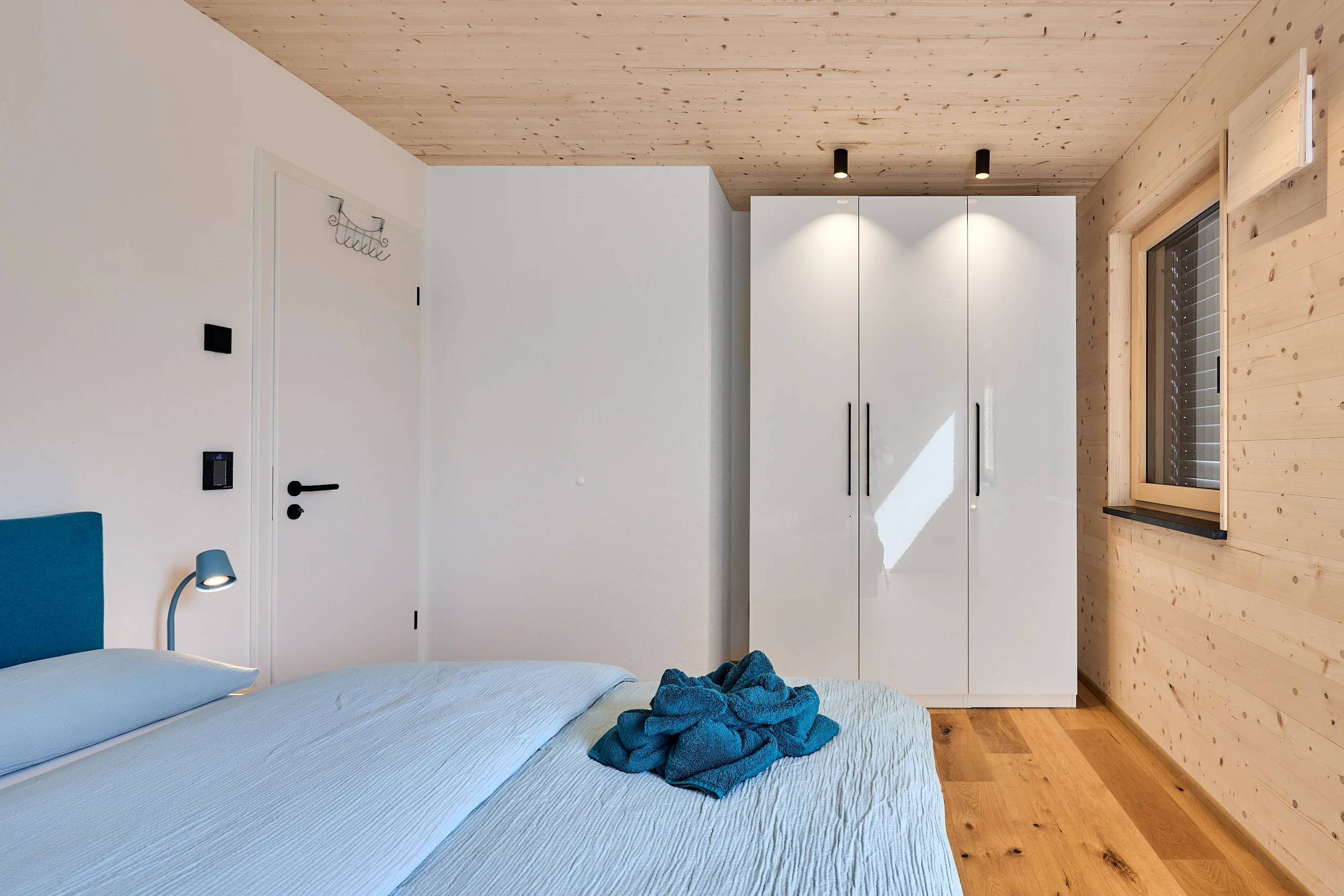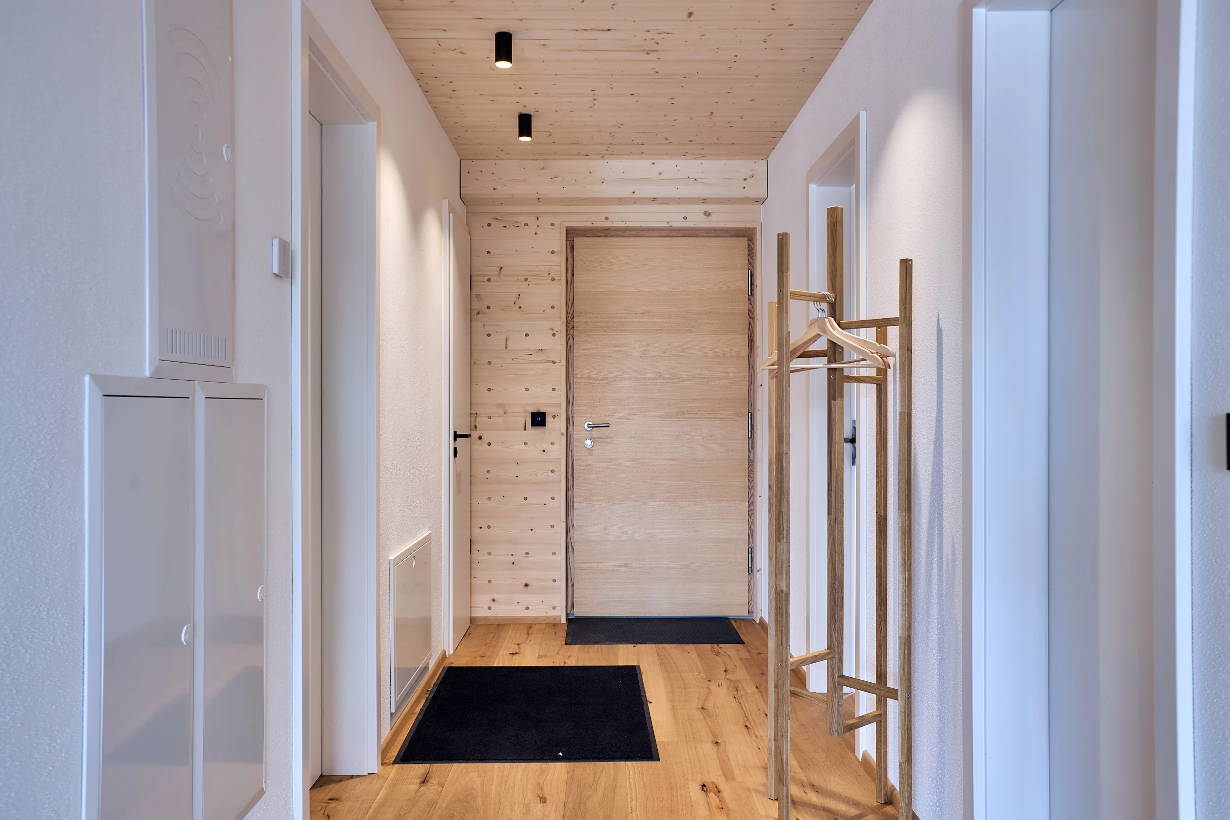 Die massive Holzkonstruktion reguliert das Raumklima auf natürliche Weise. Angenehm kühl im Sommer, wohlig warm im Winter. Schutz vor Lärm und Strahlung für erholsame Nächte.
