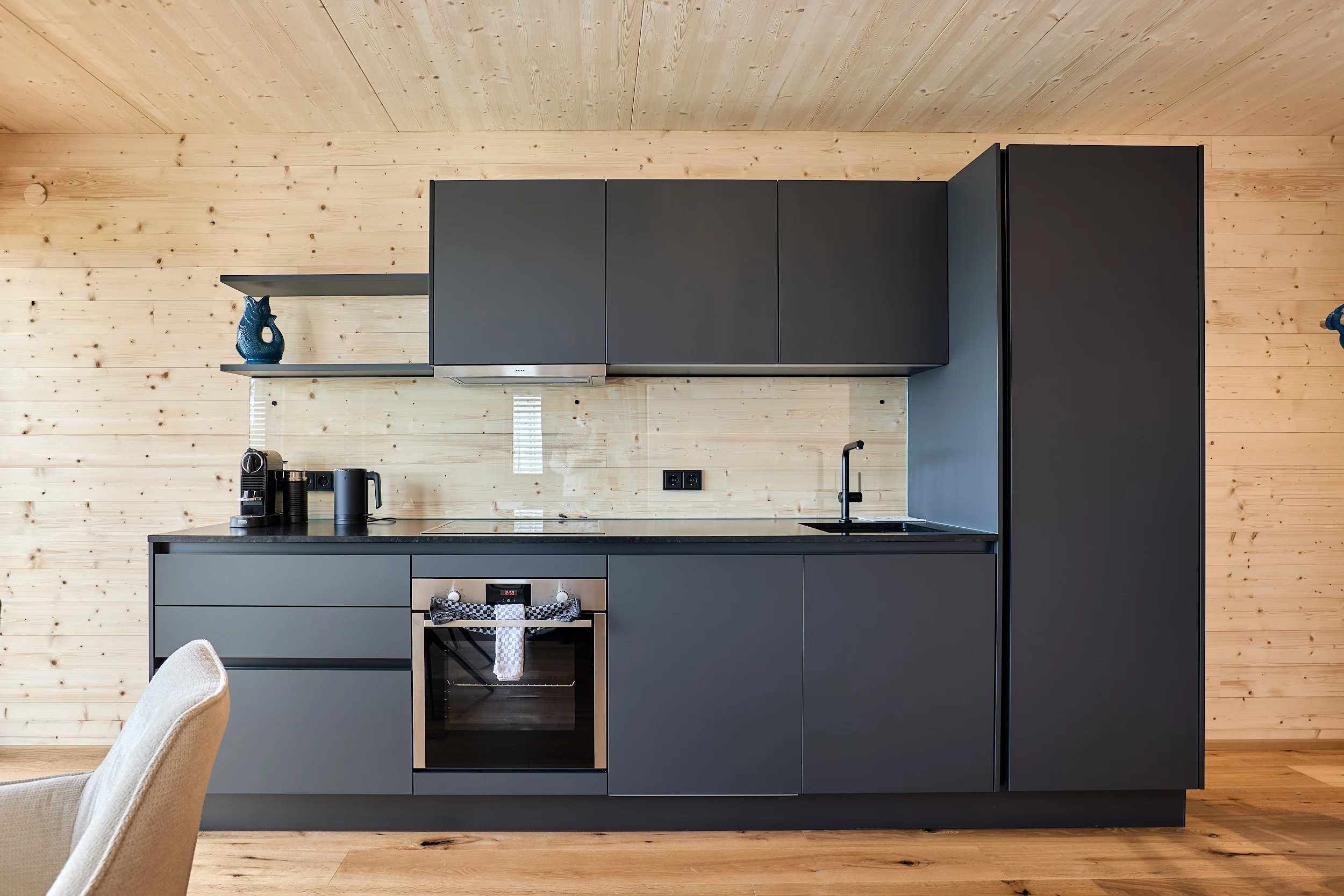 Zwei behagliche Schlafzimmer schenken Dir Ruhe und Rückzug, während die offene Wohnküche mit Essbereich den Mittelpunkt für gemeinsames Kochen, Genießen und Lachen bildet. In der Küche stehen eine Nespresso-Kaffeemaschine sowie ein Vario Kaffeefilter bereit. Das hochwertige Schlafsofa im Wohnbereich mit vollwertiger Matratze bietet auch weiteren Gästen einen erholsamen Schlaf – ideal für Familien oder kleine Gruppen.